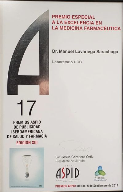 En Septiembre del 2017 el Dr. Manuel Lavariega fue acreedor al primer premio especial a la excelencia en la Medicina Farmacéutica otorgado por ASPID.