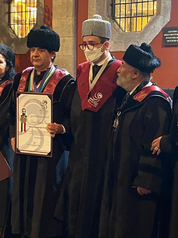 El 17 de septiembre del 2021 tuve la fortuna de ser investido con el grado de Doctor Honoris Causa por parte del Claustro Doctoral Honoris Causa. Me llena de alegría y me da un mayor compromiso civil, social, ético y moral para seguir trabajando en la medicina y con los pacientes para mejorar su calidad de vida.