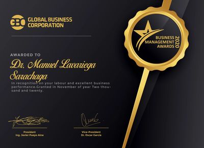 Por segundo año consecutivo como responsable de la dirección médica del Grupo Home Health Medical ha sido acreedor al reconocimiento “Business Management Awards 2019 y 2020” por el manejo y el sistema de gestión como única empresa en su rubro, reconocimiento otorgado por la empresa Global Business Corporation en mérito al éxito empresarial.